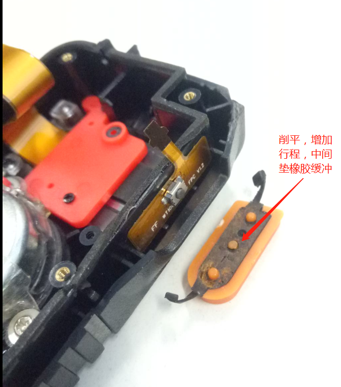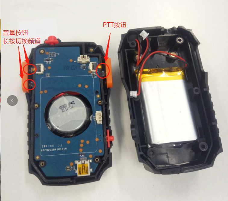 微喇蓝牙手咪PTT的改造淘宝官方店入手蓝牙v1.2手咪使用1天 个人感觉蓝牙连接还算稳定一天掉线1-2次 声音洪亮语音清晰,麦克风受话也清楚唯独PTT按键非常硬 行程短,跟常规的对讲机PTT按键舒适度相差甚远 也容易误触发打开蓝牙手咪仔细观察后发现按键和开关之间属于硬接触 没有橡胶减震带行程也比较短 我进行了改造1.用刀削平塑料接触点 增加按键行程 2.增加橡胶缓冲圈加大按钮阻力使按键不易误触发 3.对右侧的音量按钮也进行了同法改造,减少了按PTT时右侧按钮也误触发从而误切换频道的情况 改造后使用两个月以来比较满意