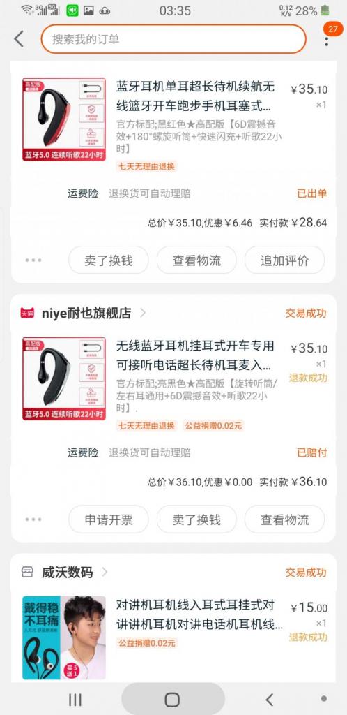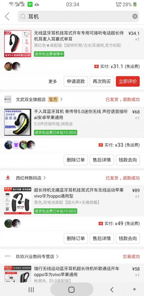 11号邮箱 关注你很久了,你是不是管理员我不知道。 关于 蓝牙耳机+蓝牙按键,出现起麦延时,和音质差,失真,对方听不楚,无法解决的问题。 使用微喇app,工作需要,换手机也试过了,今天专门晒一下我究竟换了多少个耳机。就是为了想完美使用微喇,可惜!可惜!至今未解决。问题在 蓝牙拾音以下截图是购买记录,让你看看是耳机问题还是软件问题!